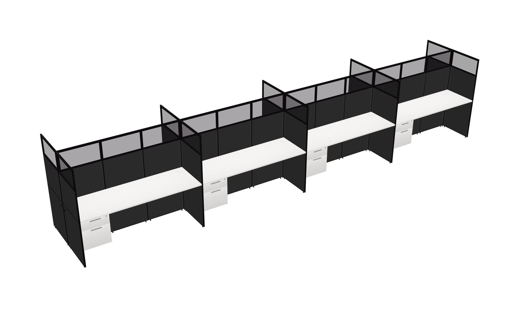 White Shared Rectangular Office Cubicle Panel System With Hanging Drawers For 8 Persons