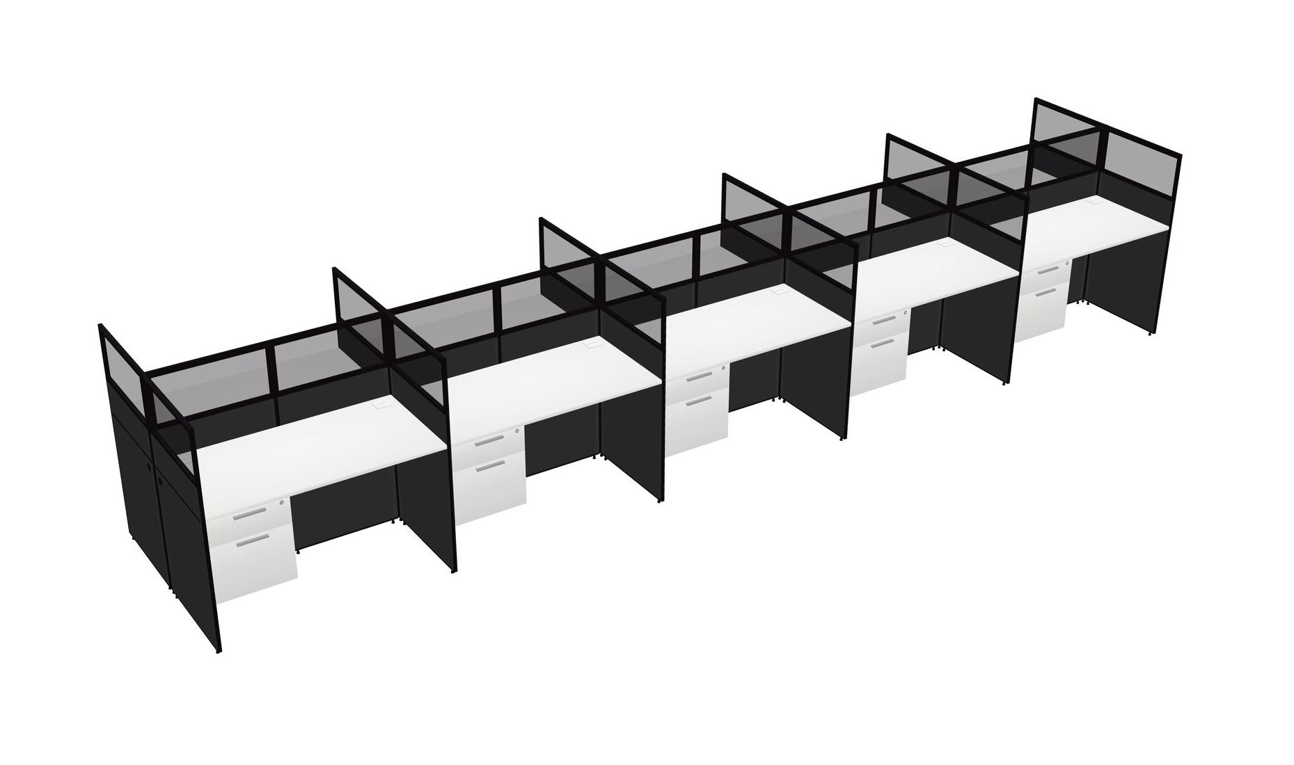 White Shared Rectangular Office Cubicle Panel System With Hanging Drawers For 10 Persons