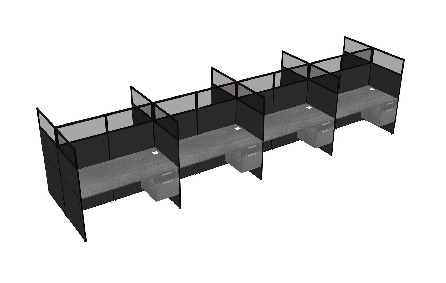 Grey Shared Rectangular Office Cubicle Panel System With Hanging Drawers For 8 Persons