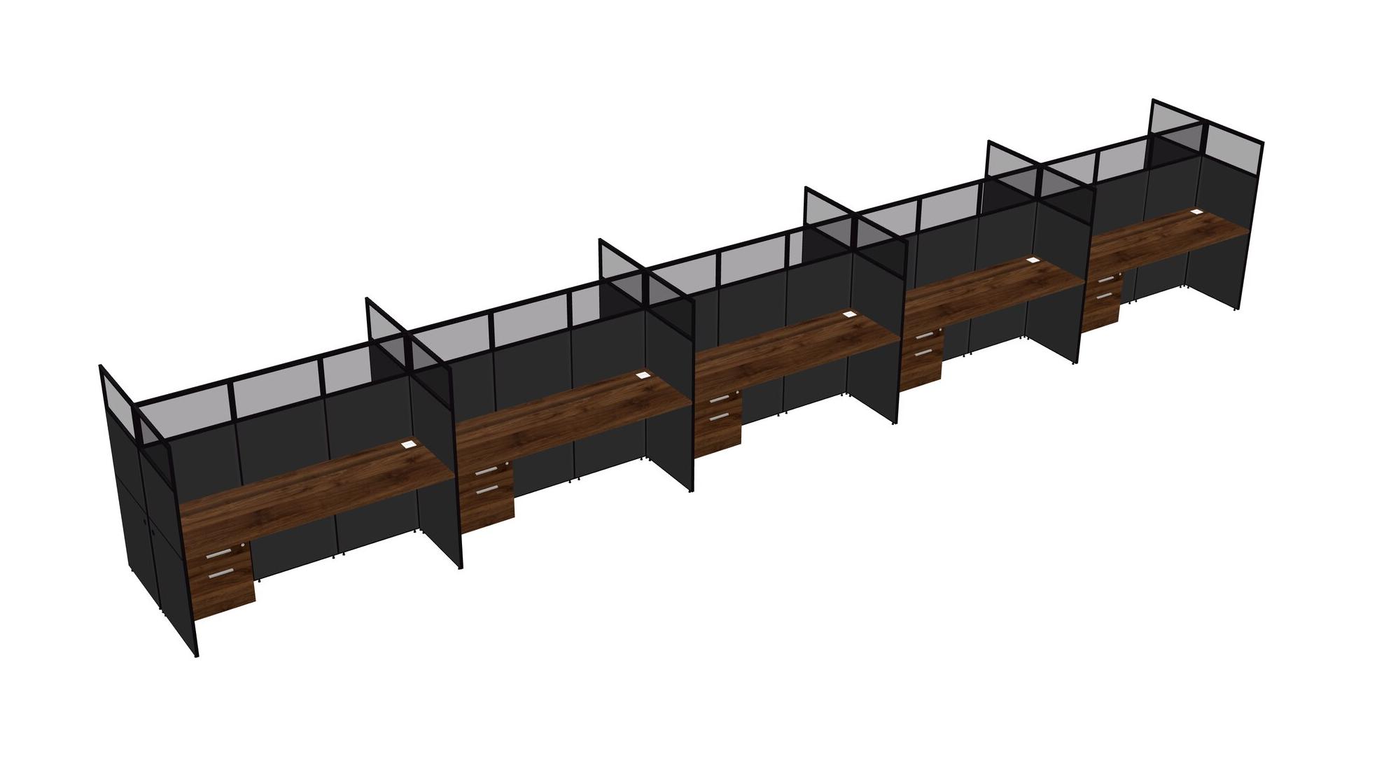 Columbia Walnut Shared Rectangular Office Cubicle Panel System With Hanging Drawers For 10 Persons