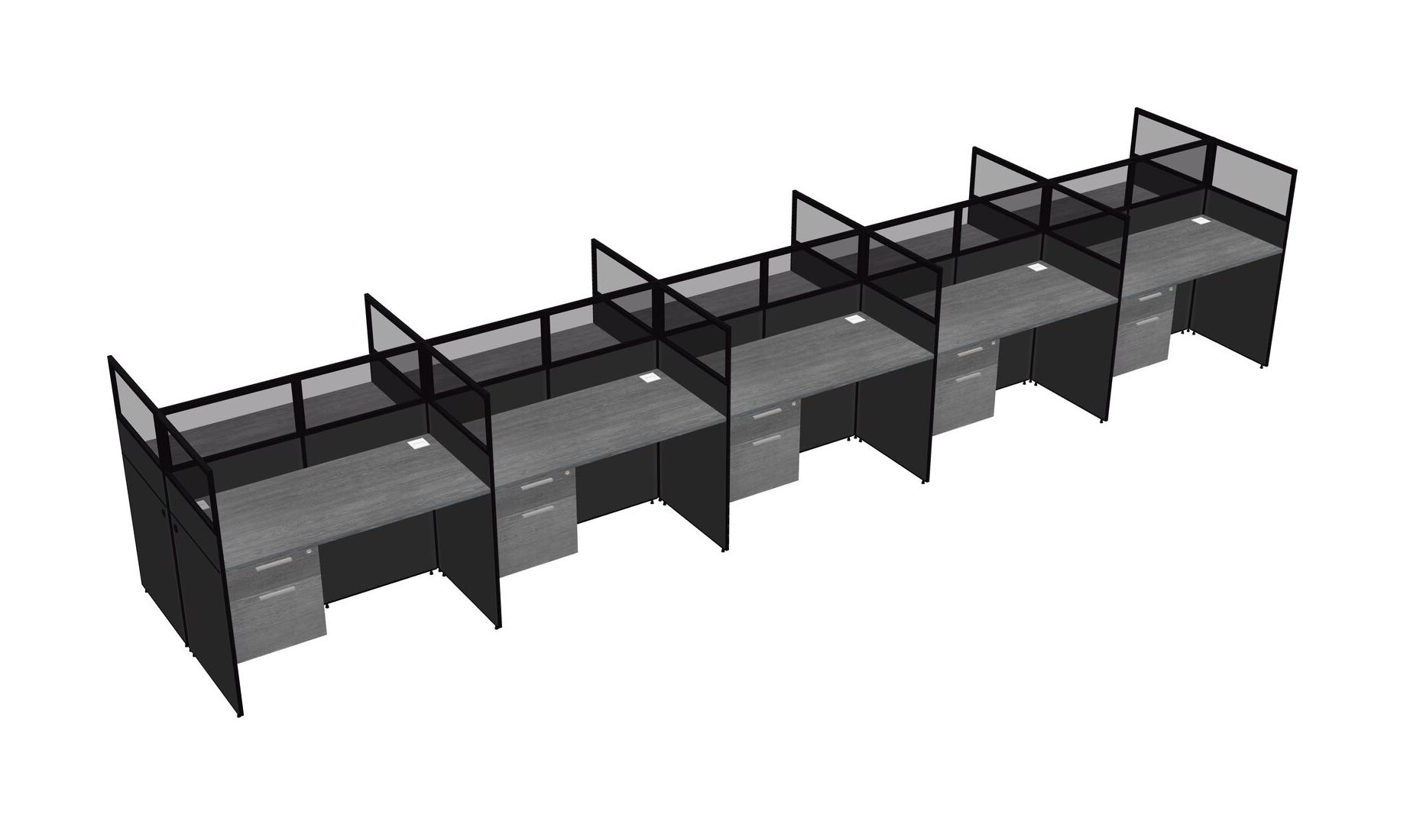 Grey Shared Rectangular Office Cubicle Panel System With Hanging Drawers For 10 Persons