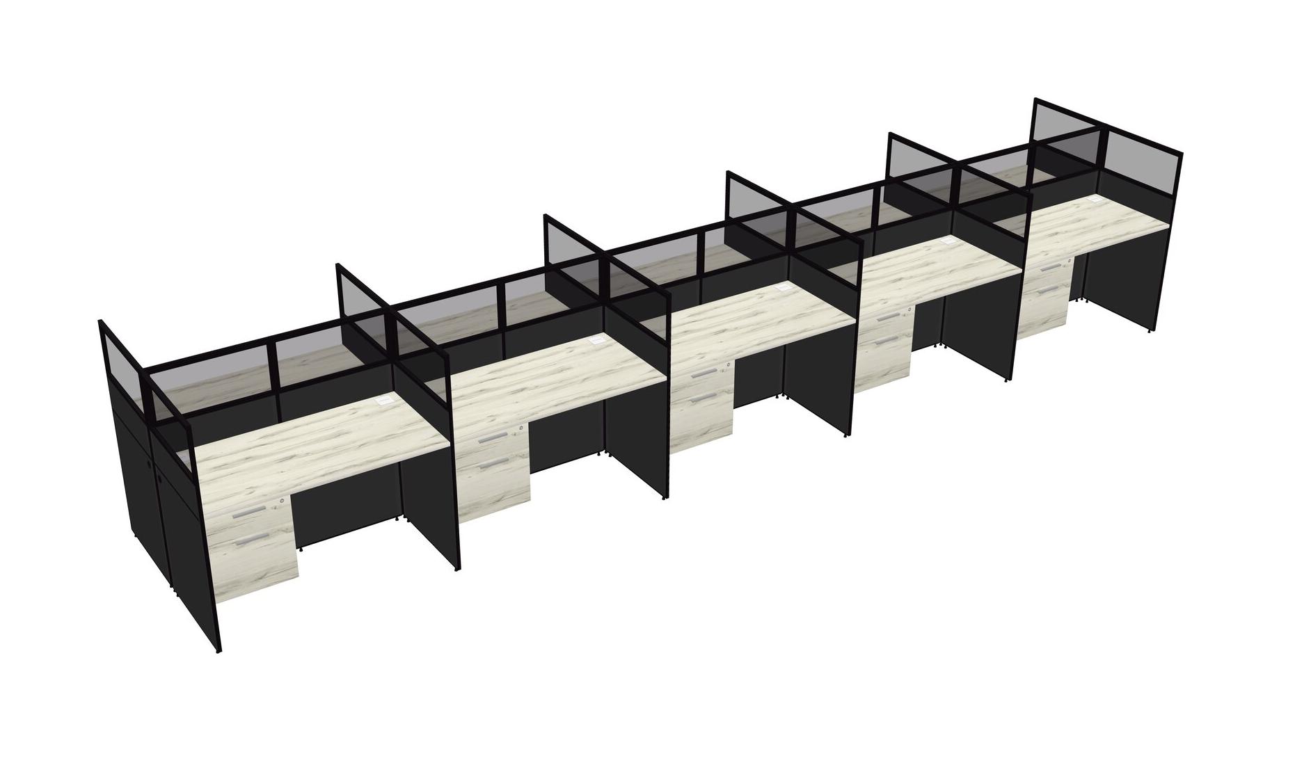 Heinne Holz Shared Rectangular Office Cubicle Panel System With Hanging Drawers For 10 Persons