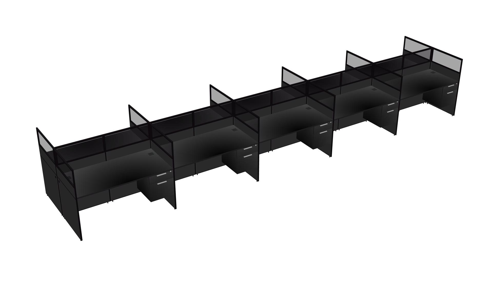 Black Shared Rectangular Office Cubicle Panel System With Hanging Drawers For 10 Persons