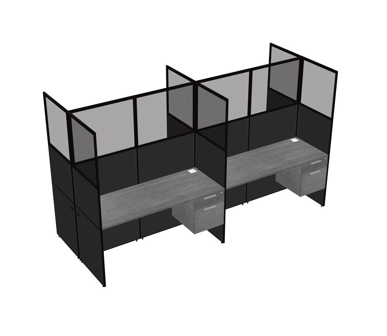 Grey Shared Rectangular Office Cubicle Panel System With Hanging Drawers For 4 Persons