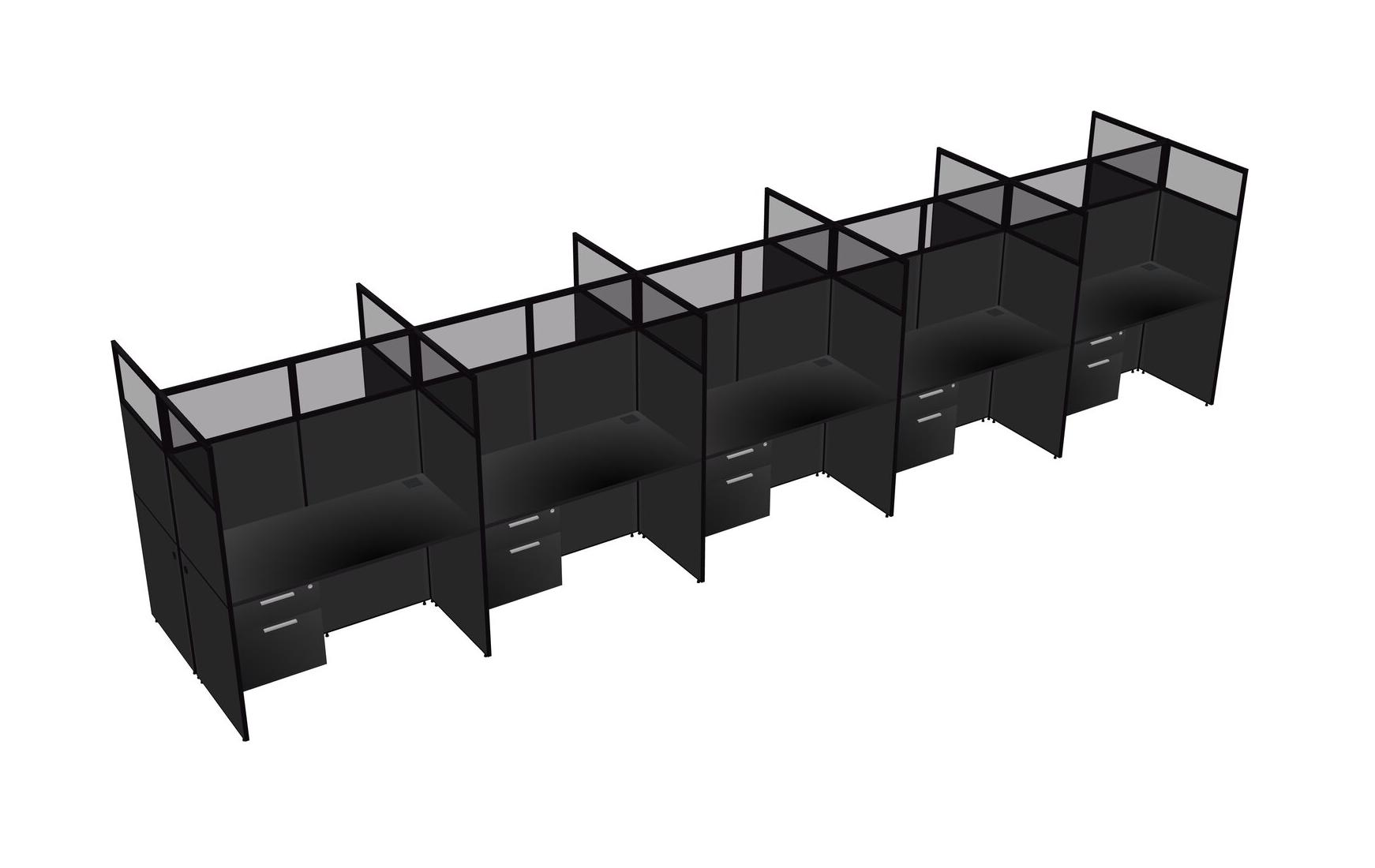Black Shared Rectangular Office Cubicle Panel System With Hanging Drawers For 10 Persons