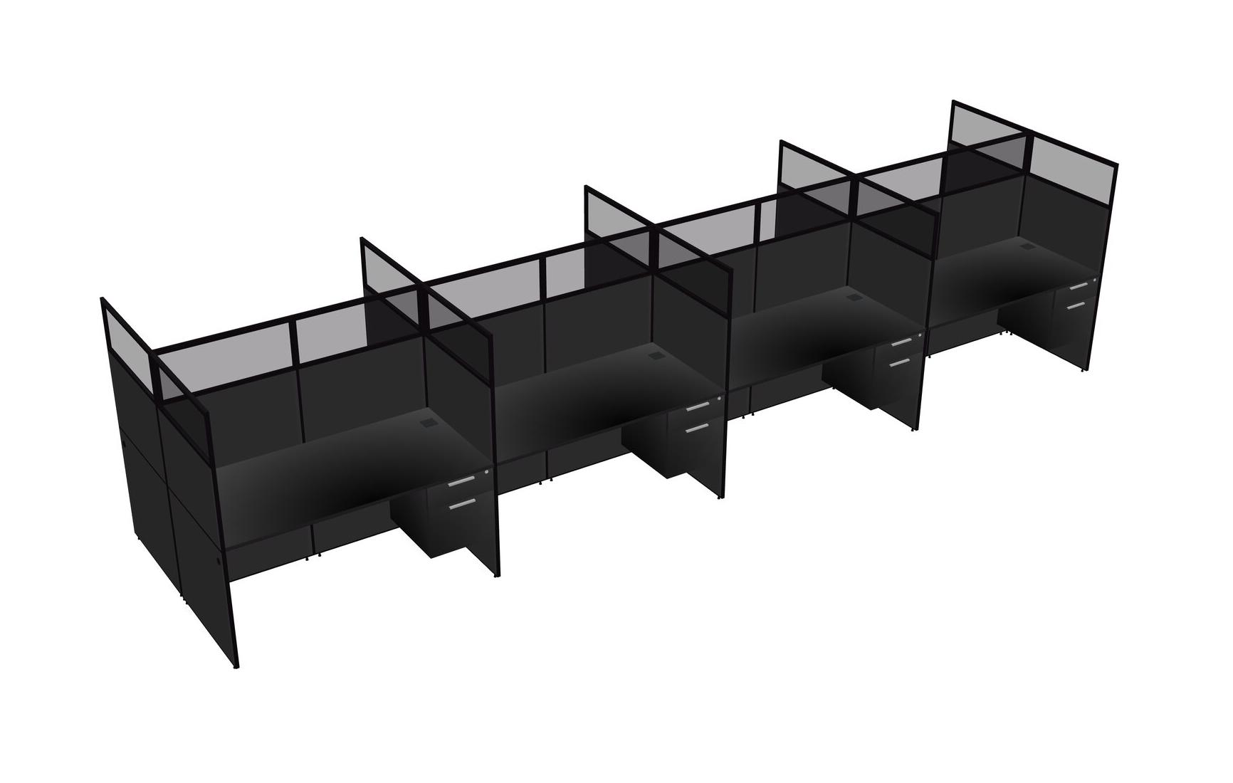 Black Shared Rectangular Office Cubicle Panel System With Hanging Drawers For 8 Persons