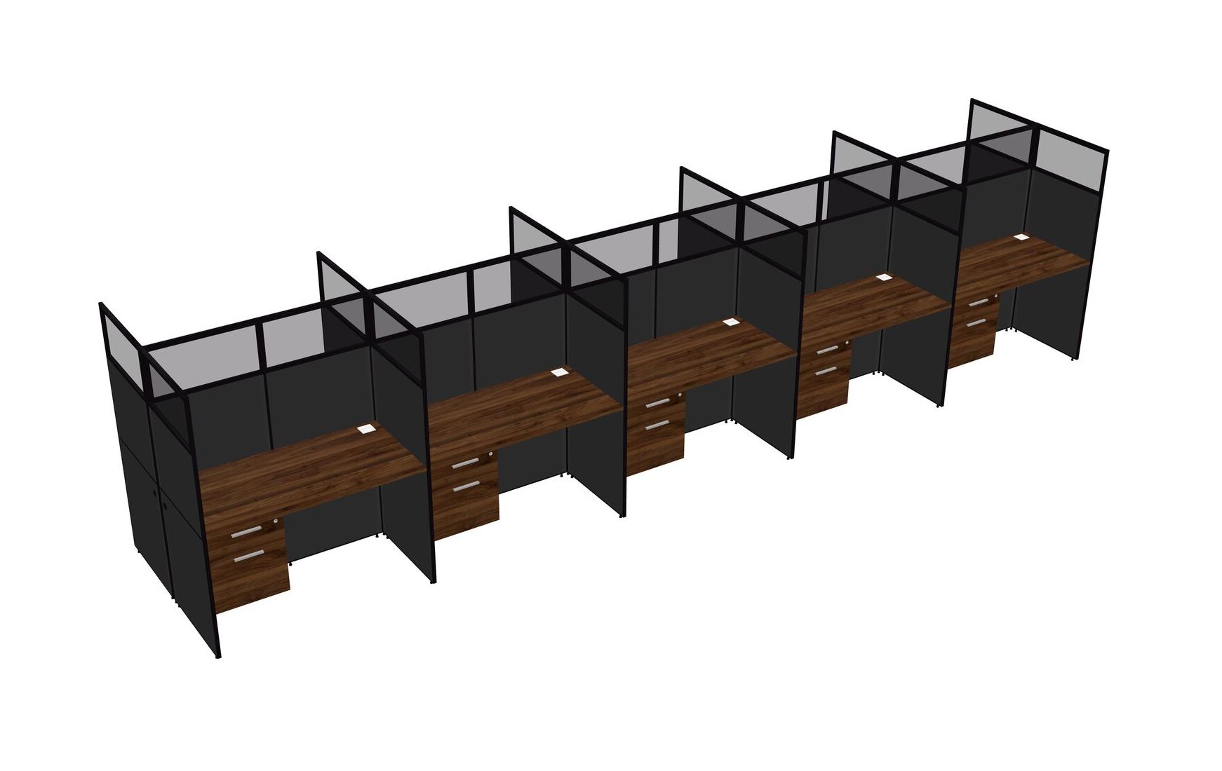 Columbia Walnut Shared Rectangular Office Cubicle Panel System With Hanging Drawers For 10 Persons