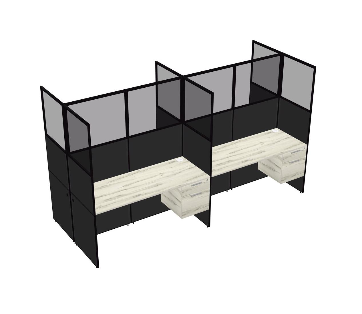 Heinne Holz Shared Rectangular Office Cubicle Panel System With Hanging Drawers For 4 Persons