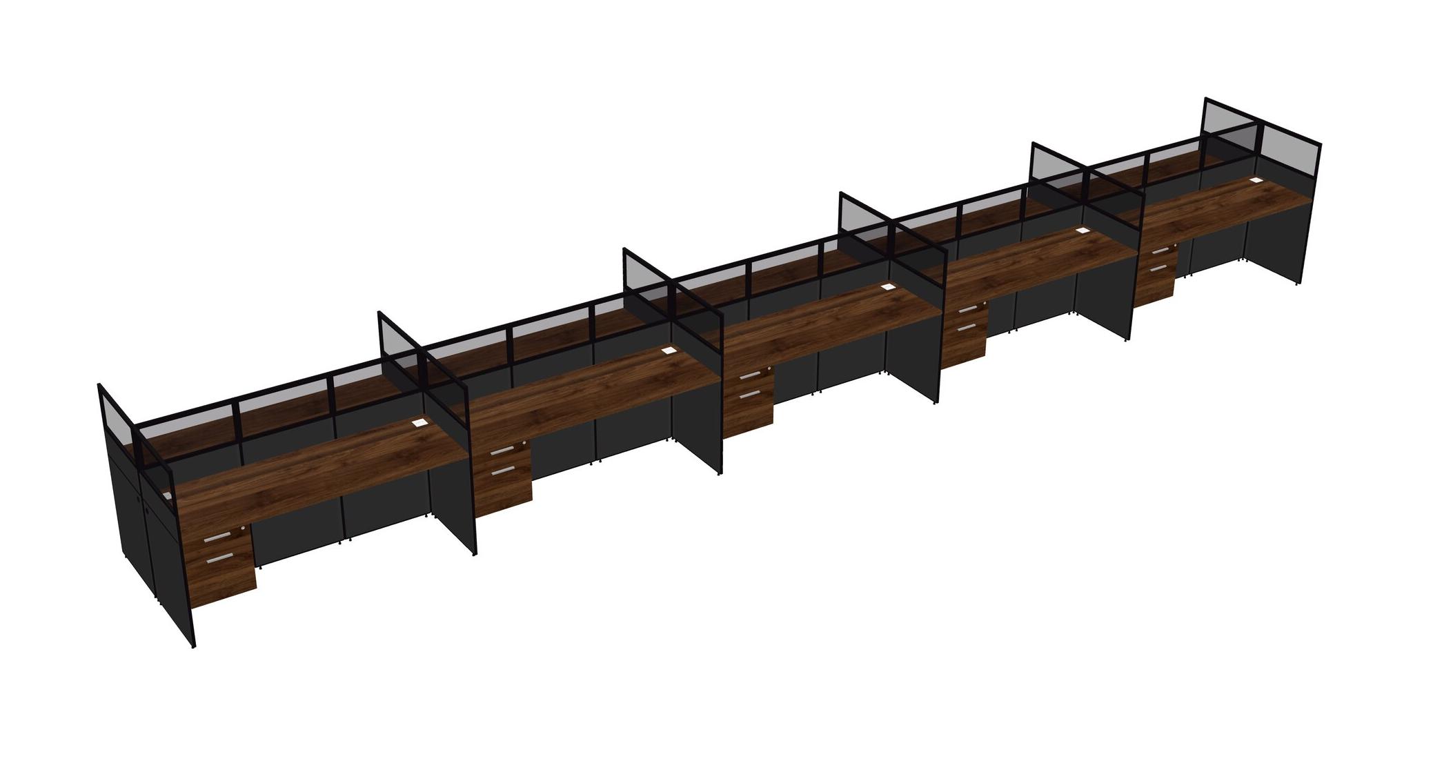 Columbia Walnut Shared Rectangular Office Cubicle Panel System With Hanging Drawers For 10 Persons