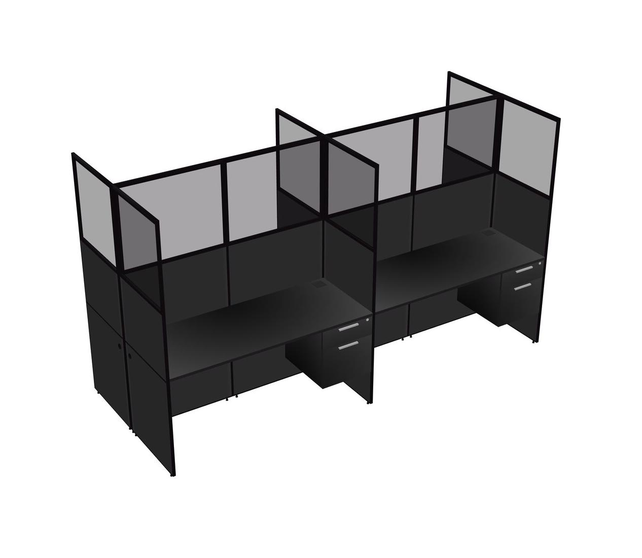 Black Shared Rectangular Office Cubicle Panel System With Hanging Drawers For 4 Persons