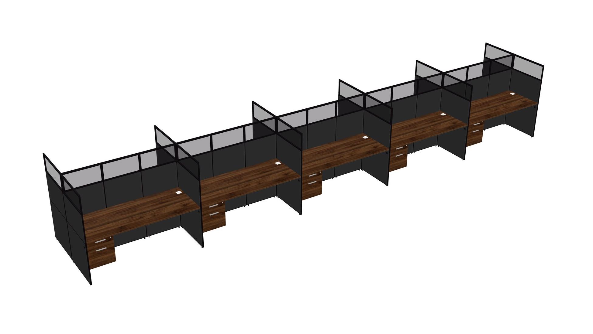 Columbia Walnut Shared Rectangular Office Cubicle Panel System With Hanging Drawers For 10 Persons