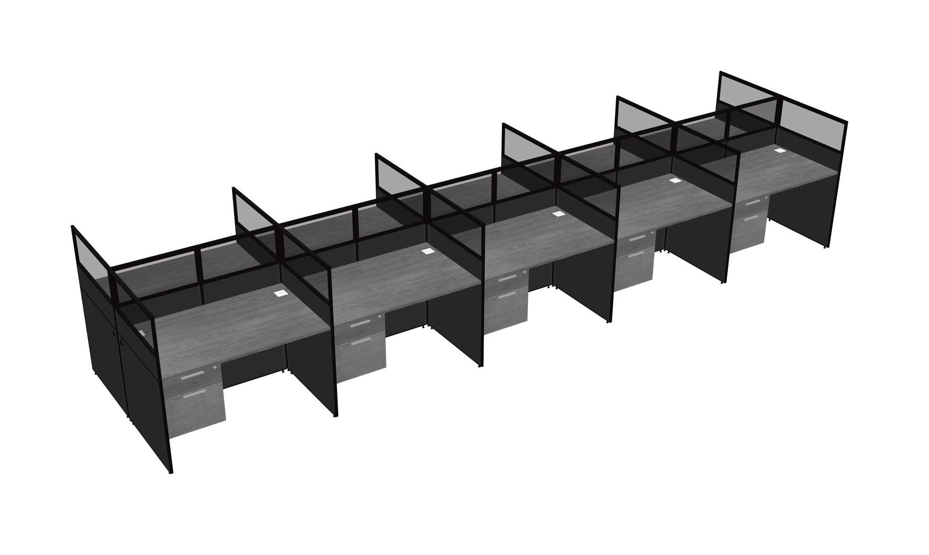 Grey Shared Rectangular Office Cubicle Panel System With Hanging Drawers For 10 Persons