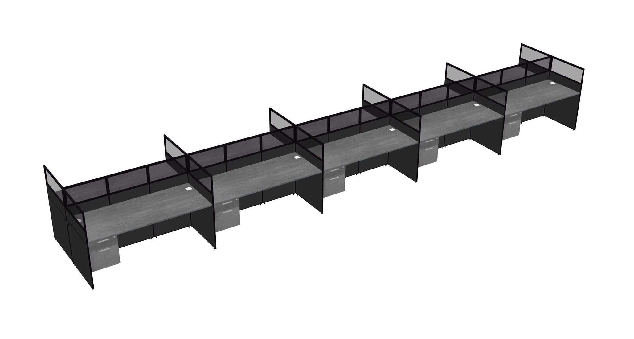 Grey Shared Rectangular Office Cubicle Panel System With Hanging Drawers For 10 Persons