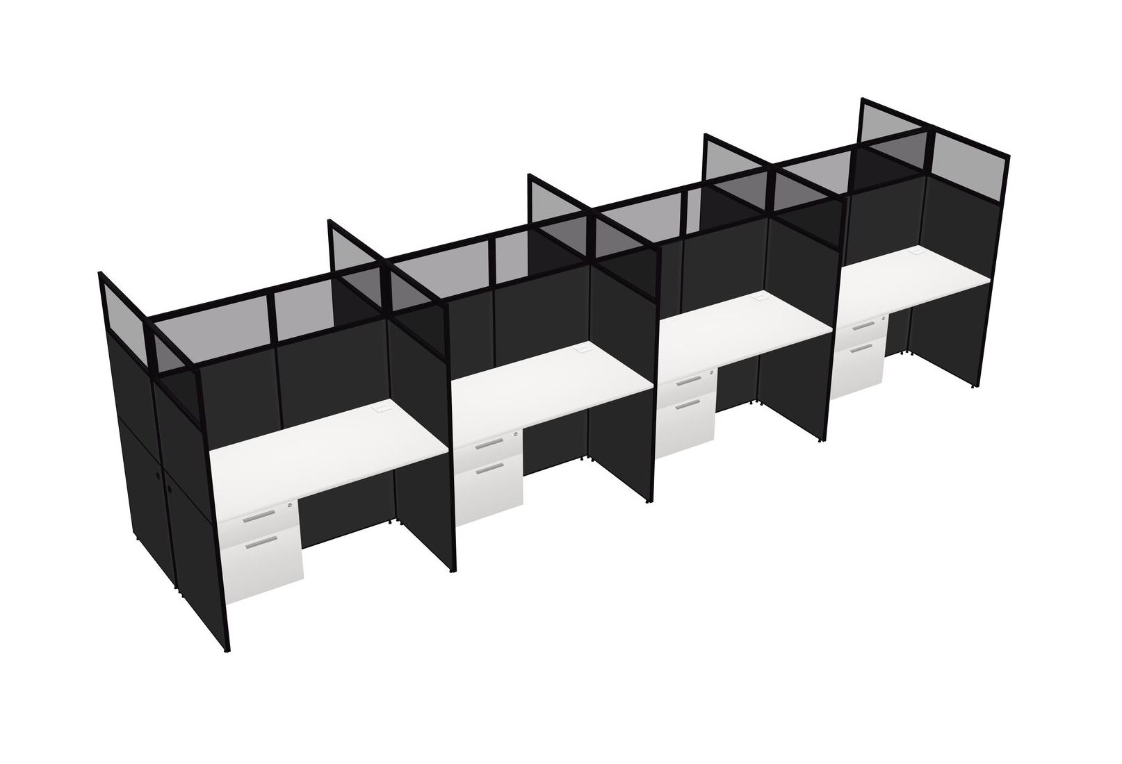 White Shared Rectangular Office Cubicle Panel System With Hanging Drawers For 8 Persons