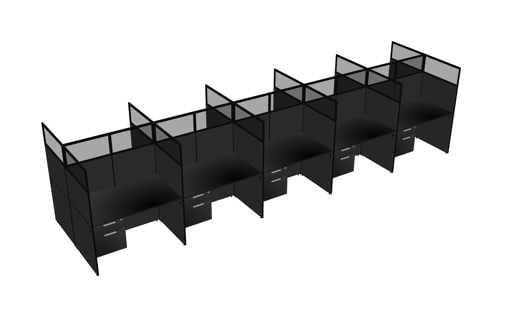Black Shared Rectangular Office Cubicle Panel System With Hanging Drawers For 10 Persons