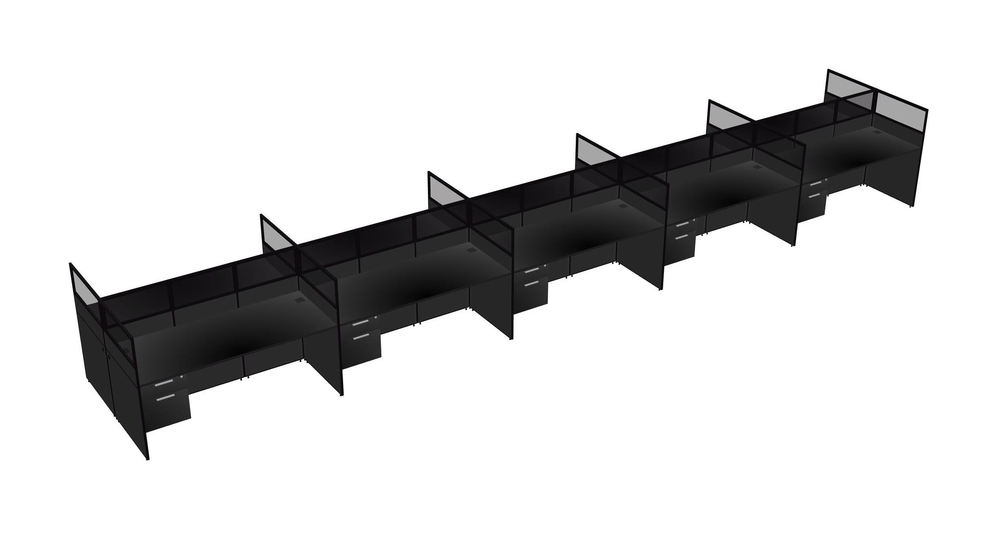 Black Shared Rectangular Office Cubicle Panel System With Hanging Drawers For 10 Persons