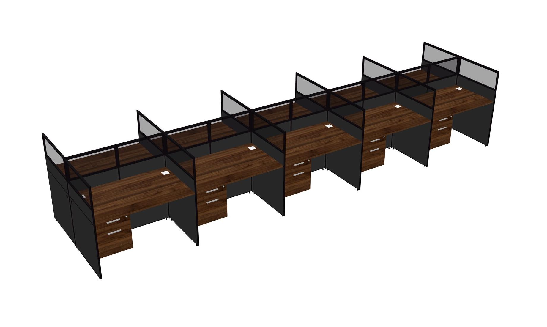 Columbia Walnut Shared Rectangular Office Cubicle Panel System With Hanging Drawers For 10 Persons