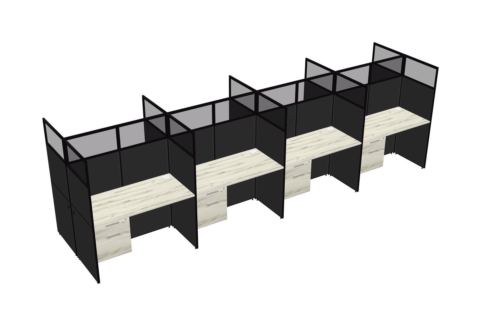 Heinne Holz Shared Rectangular Office Cubicle Panel System With Hanging Drawers For 8 Persons