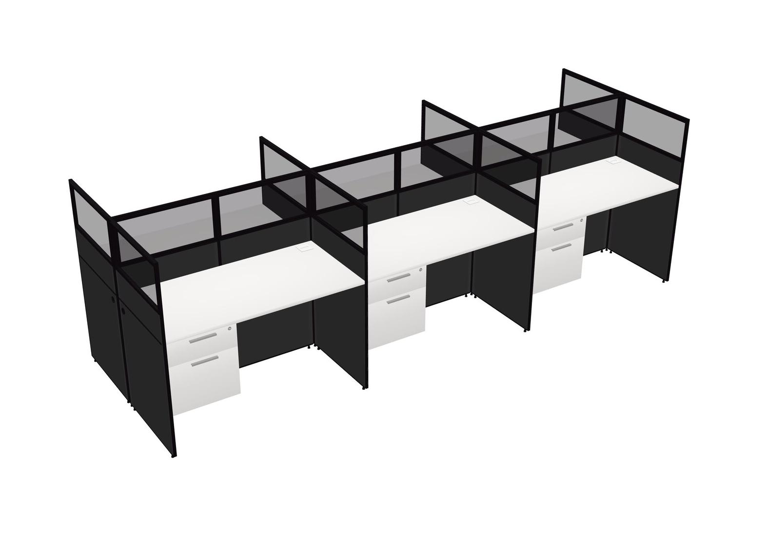 White Shared Rectangular Office Cubicle Panel System With Hanging Drawers For 6 Persons