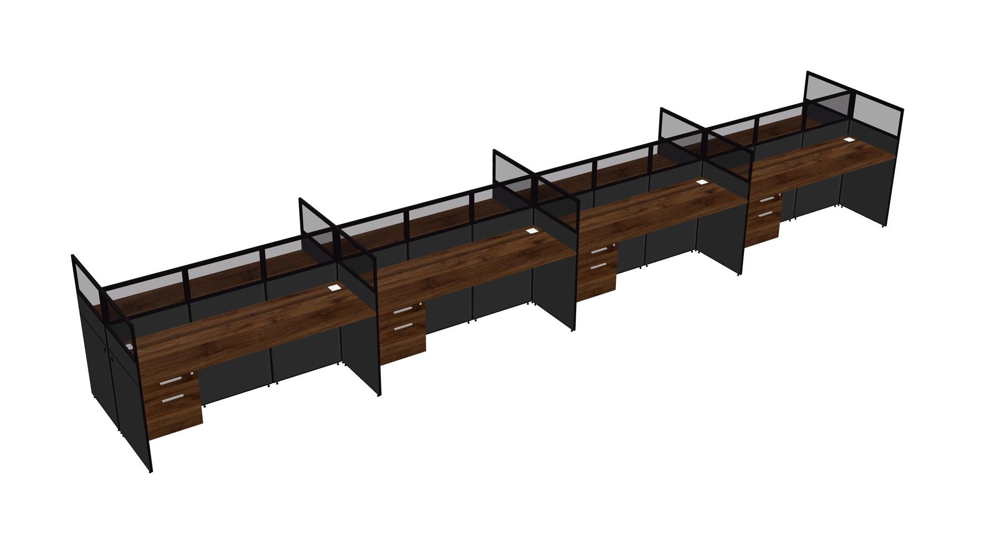 Columbia Walnut Shared Rectangular Office Cubicle Panel System With Hanging Drawers For 8 Persons