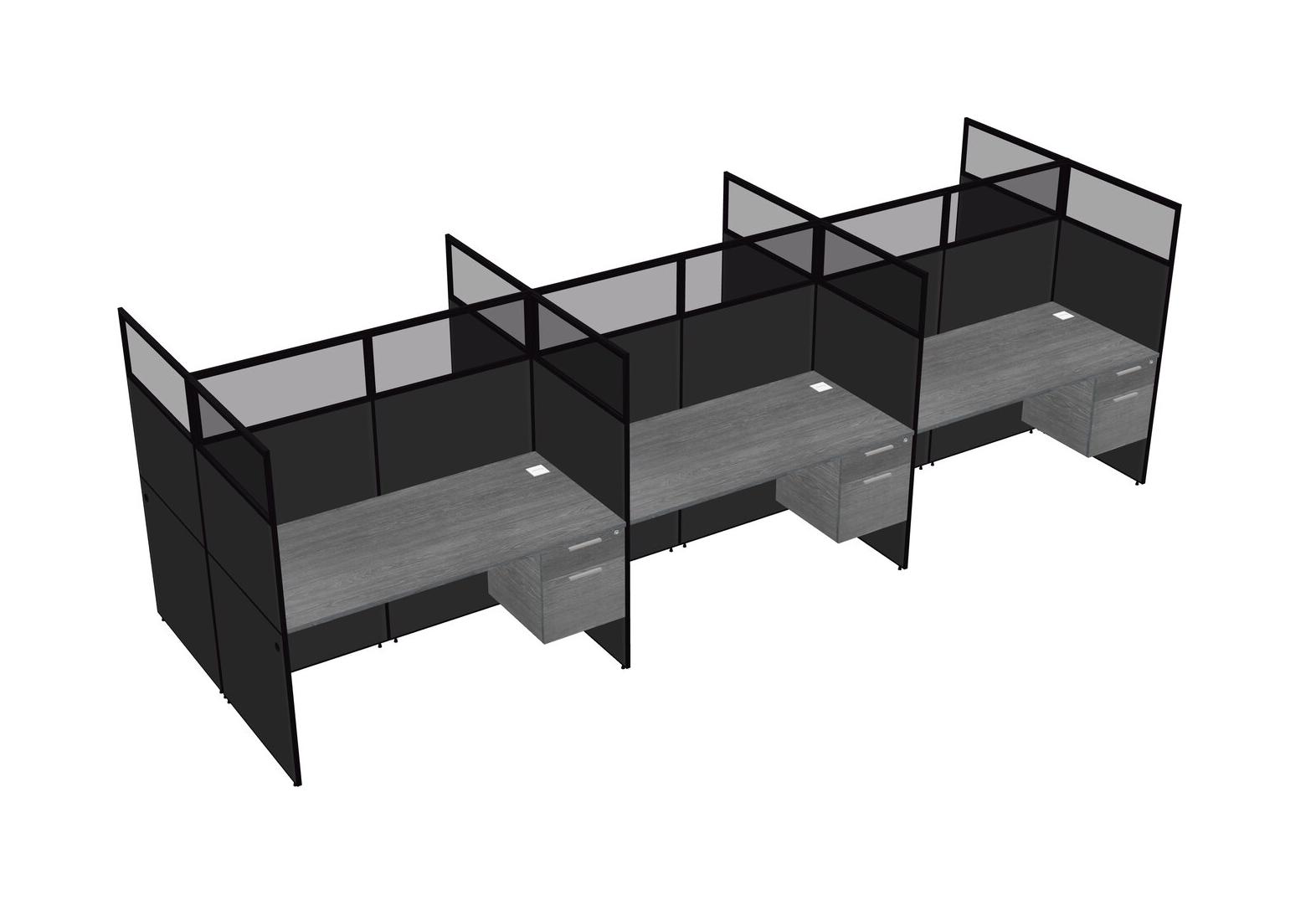 Grey Shared Rectangular Office Cubicle Panel System With Hanging Drawers For 6 Persons
