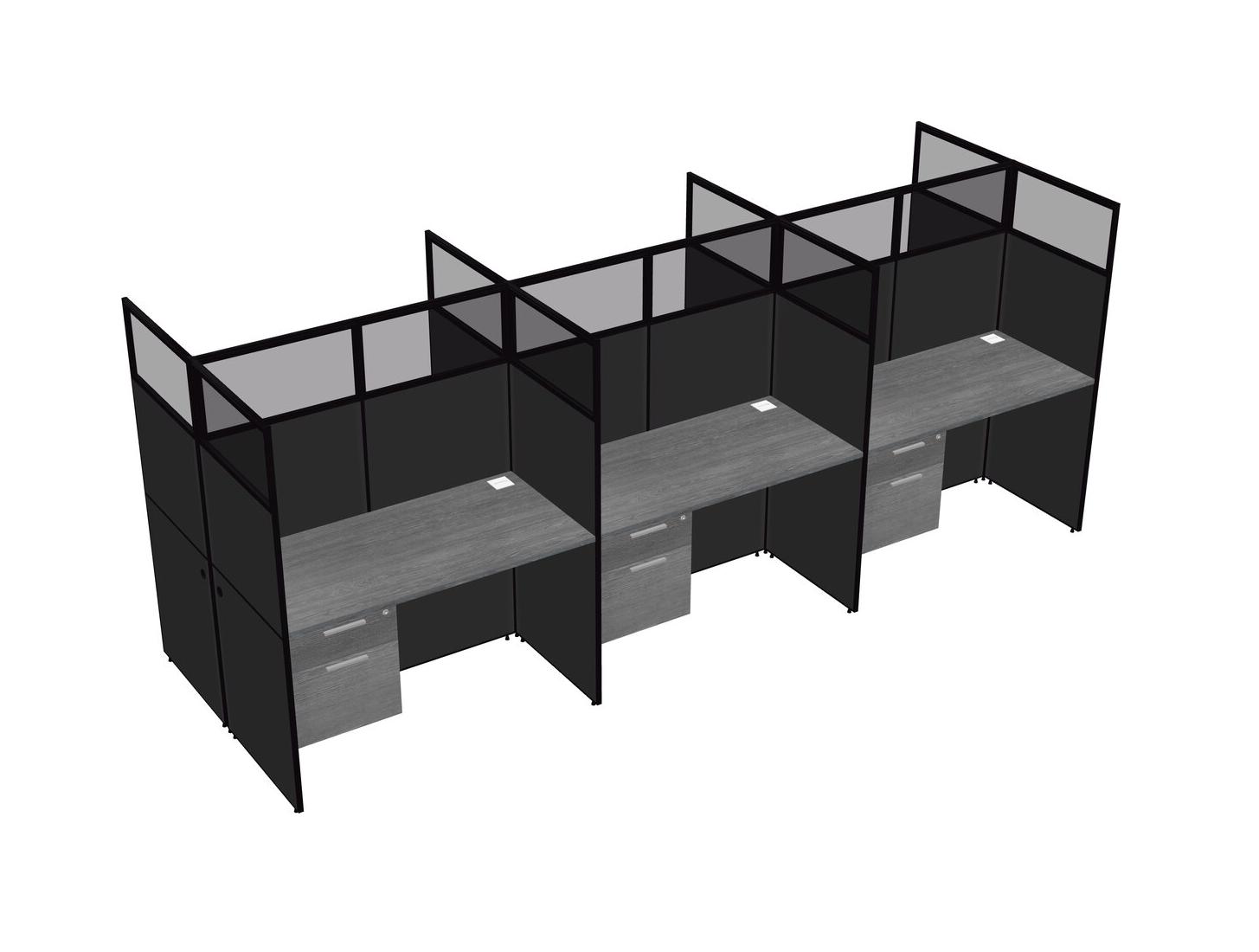 Grey Shared Rectangular Office Cubicle Panel System With Hanging Drawers For 6 Persons