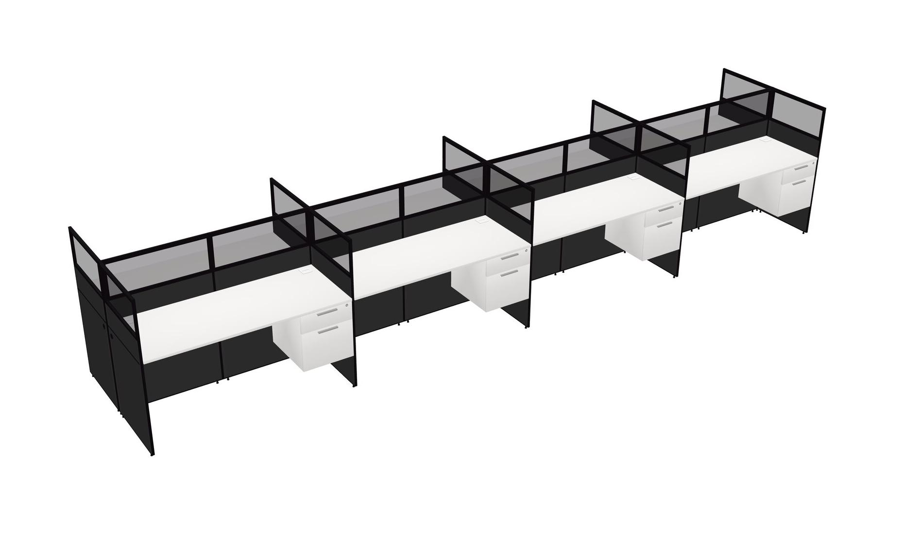 White Shared Rectangular Office Cubicle Panel System With Hanging Drawers For 8 Persons