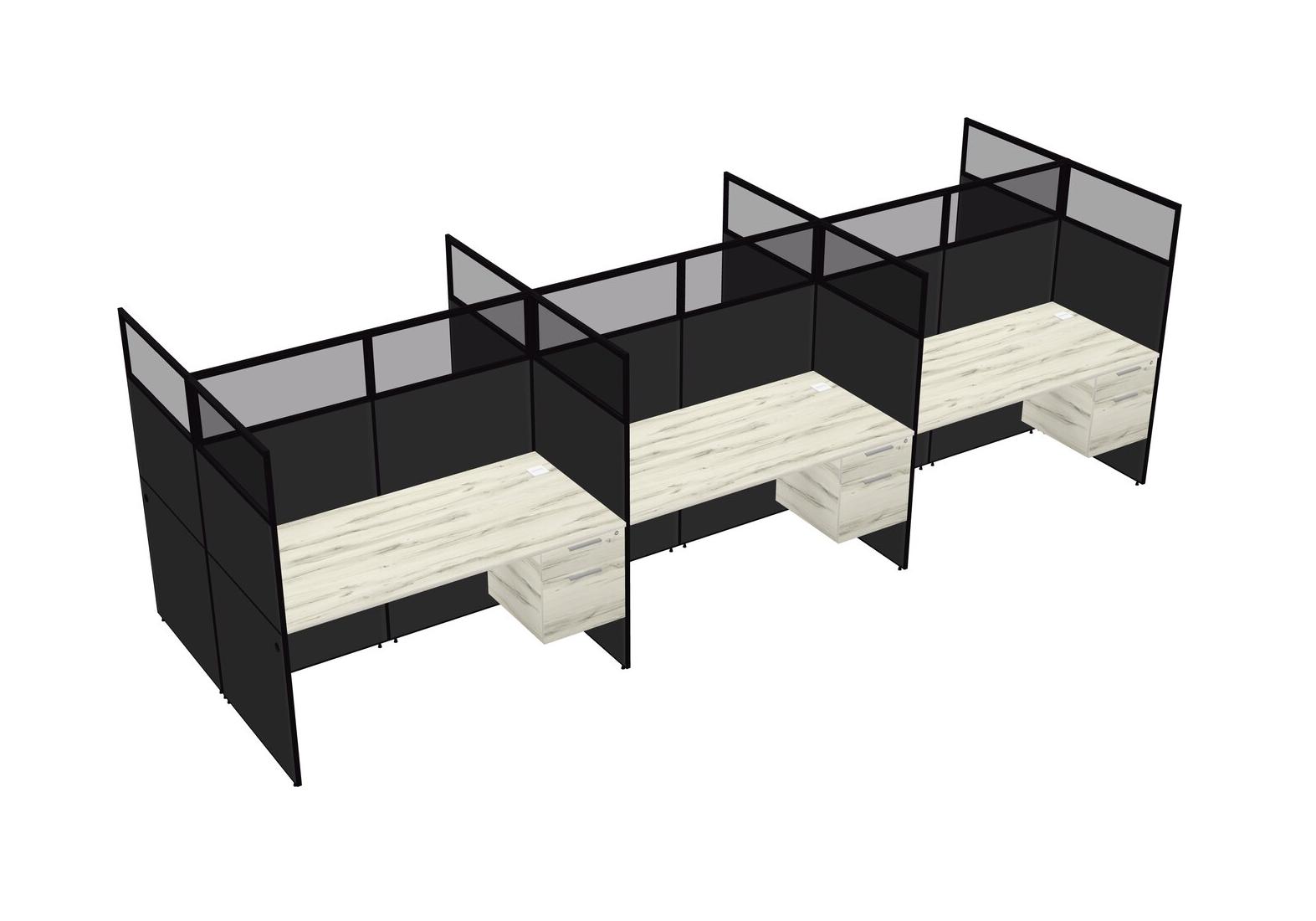 Heinne Holz Shared Rectangular Office Cubicle Panel System With Hanging Drawers For 6 Persons