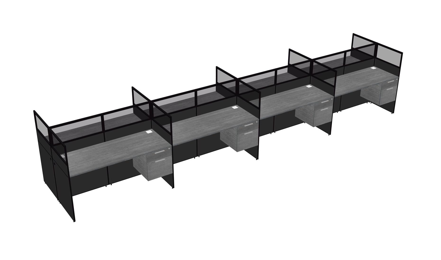 Grey Shared Rectangular Office Cubicle Panel System With Hanging Drawers For 8 Persons