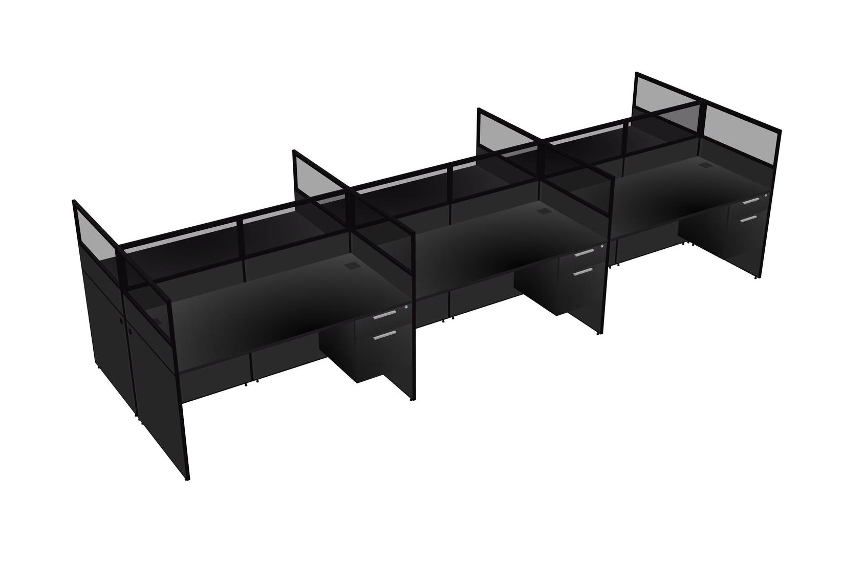 Black Shared Rectangular Office Cubicle Panel System With Hanging Drawers For 6 Persons
