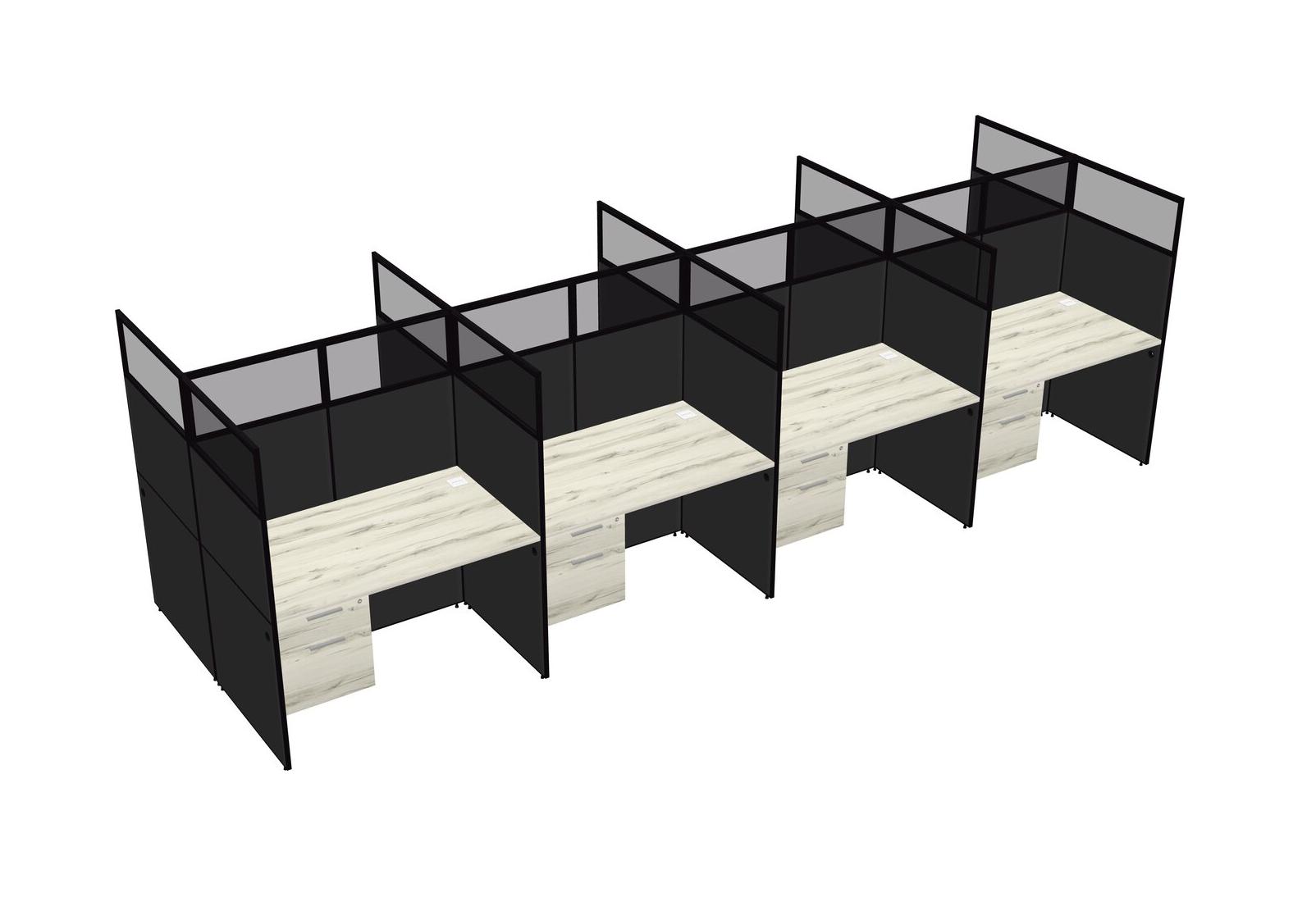 Heinne Holz Shared Rectangular Office Cubicle Panel System With Hanging Drawers For 8 Persons