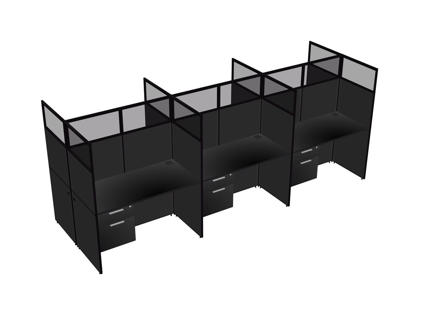 Black Shared Rectangular Office Cubicle Panel System With Hanging Drawers For 6 Persons