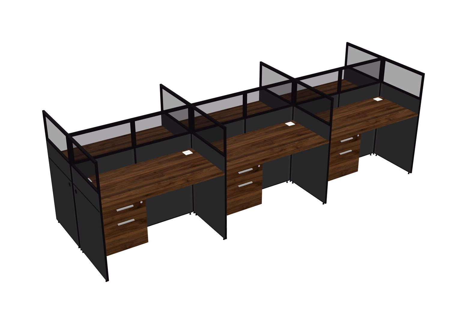 Columbia Walnut Shared Rectangular Office Cubicle Panel System With Hanging Drawers For 6 Persons