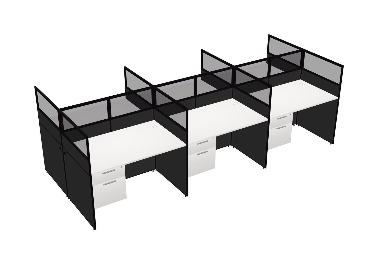 White Shared Rectangular Office Cubicle Panel System With Hanging Drawers For 6 Persons