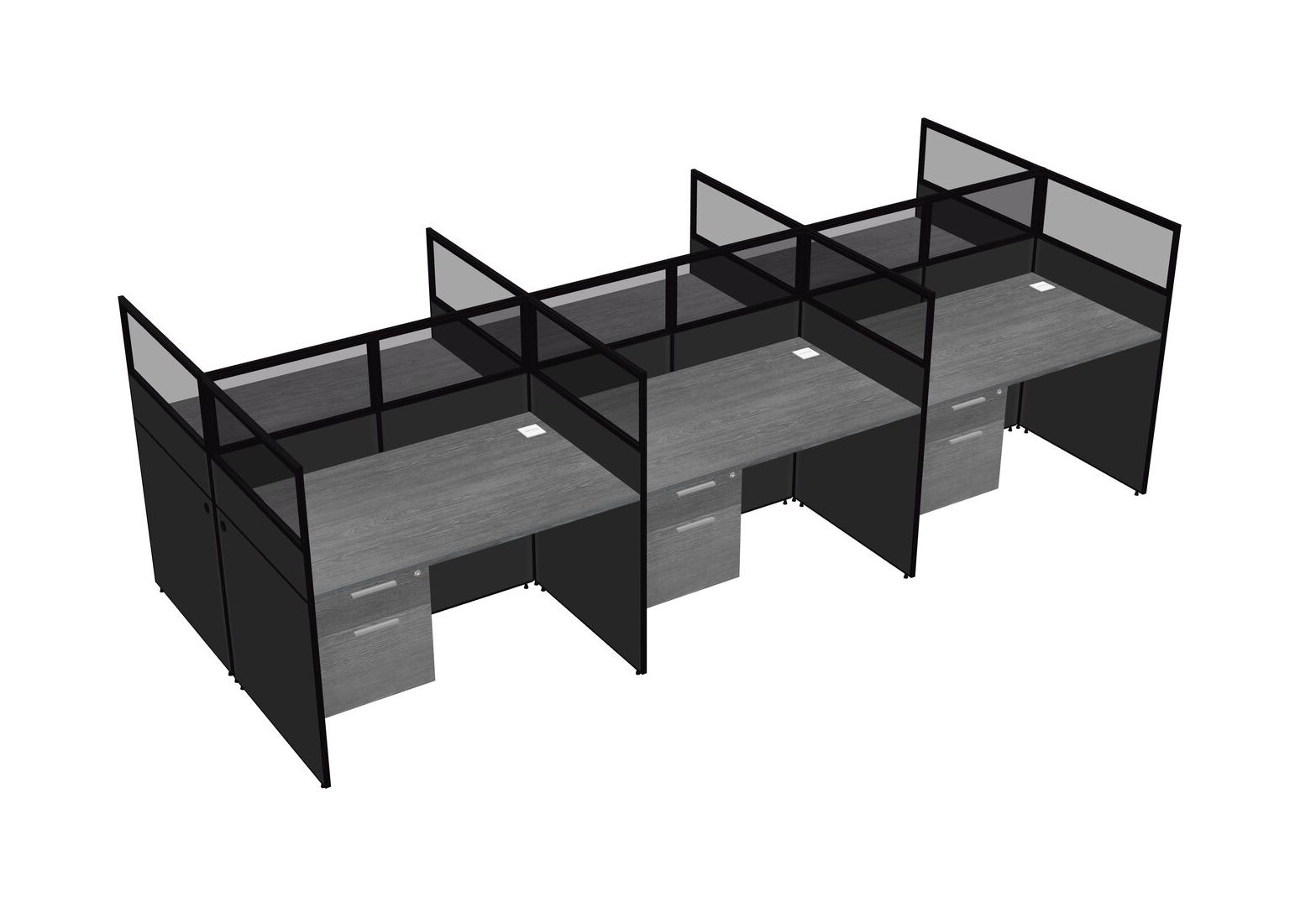 Grey Shared Rectangular Office Cubicle Panel System With Hanging Drawers For 6 Persons