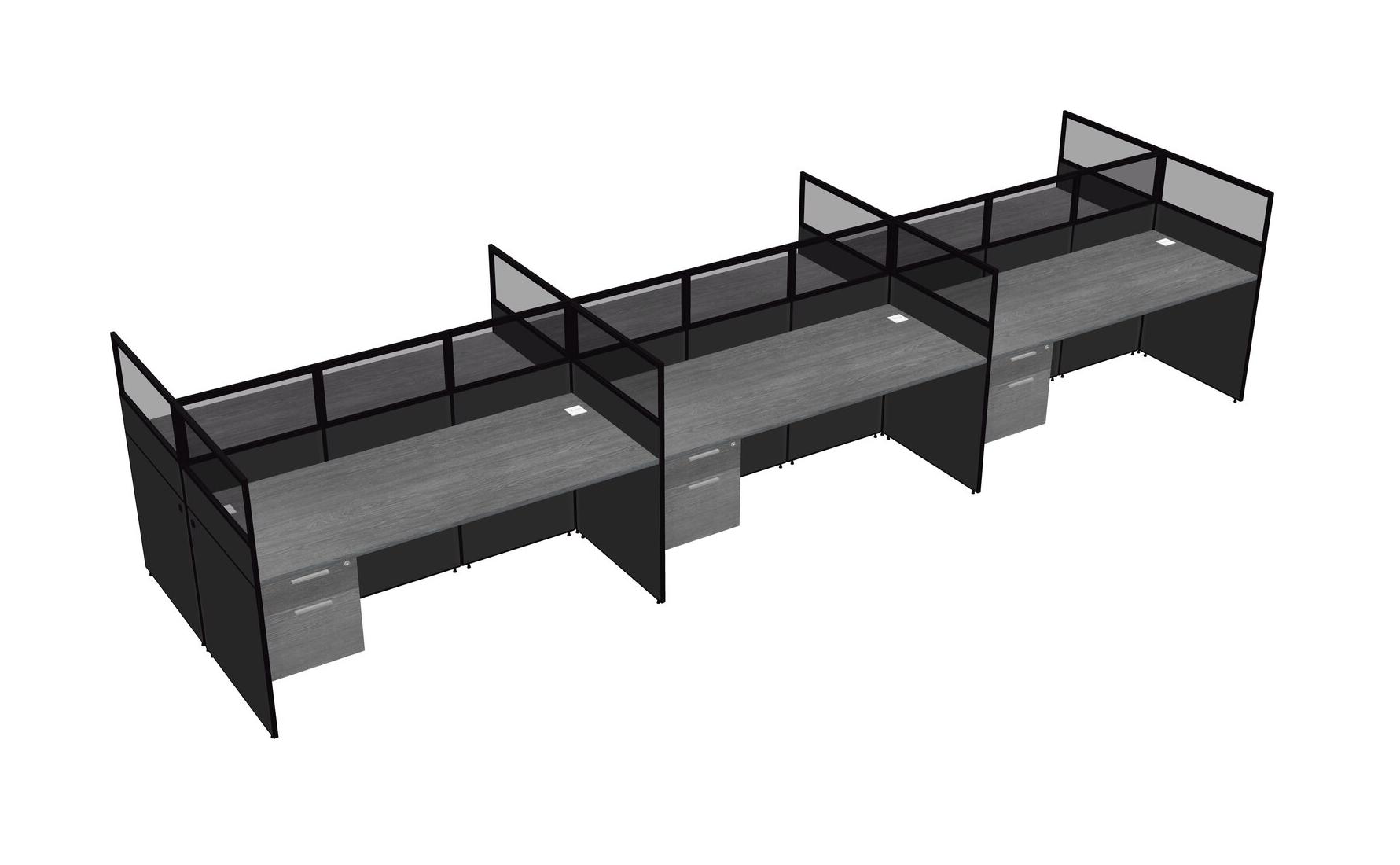 Grey Shared Rectangular Office Cubicle Panel System With Hanging Drawers For 6 Persons