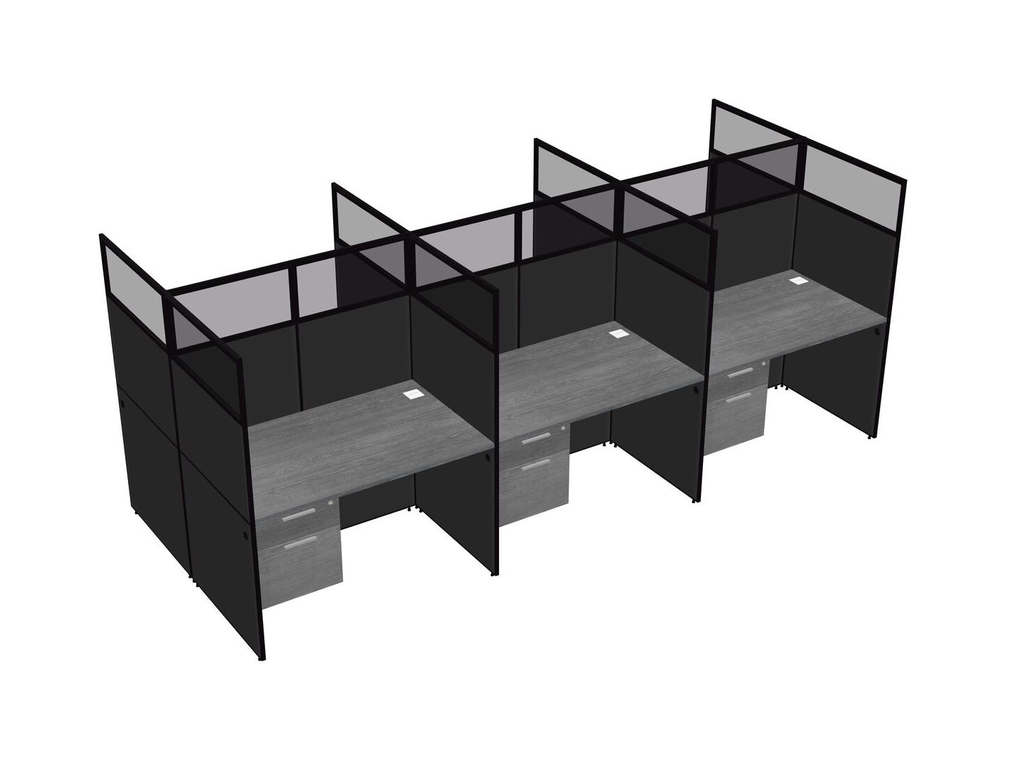 Grey Shared Rectangular Office Cubicle Panel System With Hanging Drawers For 6 Persons