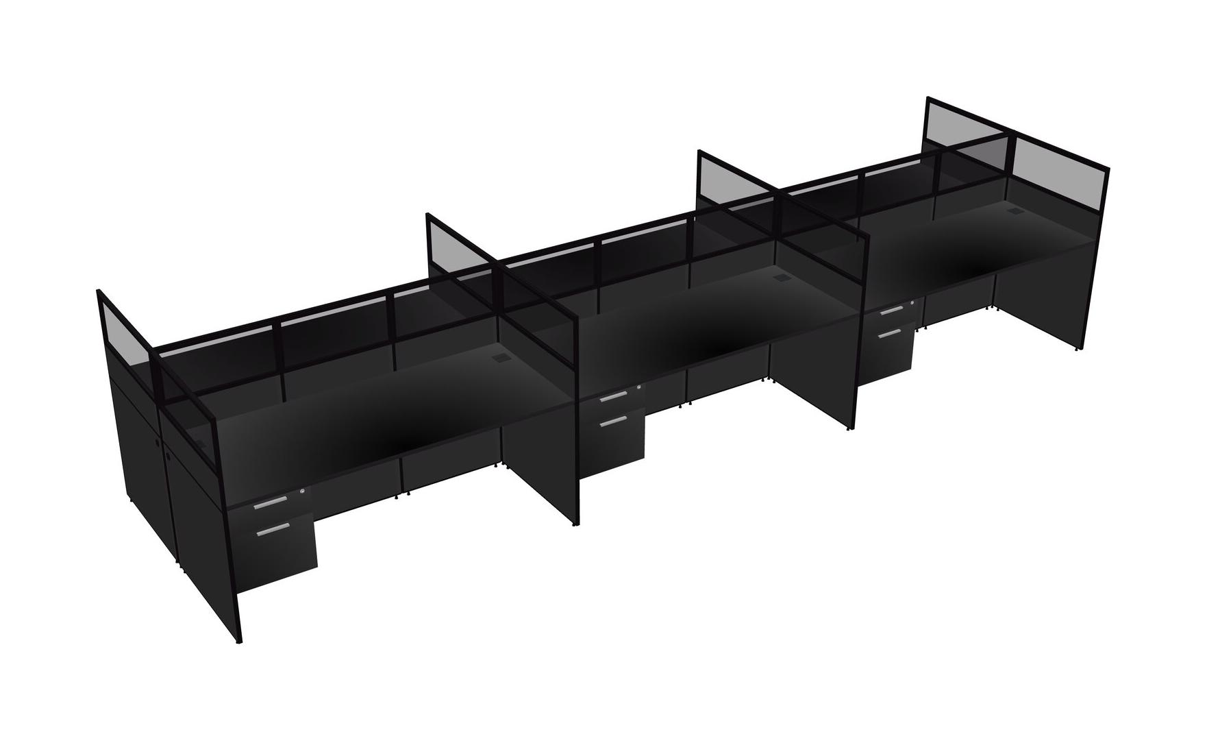 Black Shared Rectangular Office Cubicle Panel System With Hanging Drawers For 6 Persons