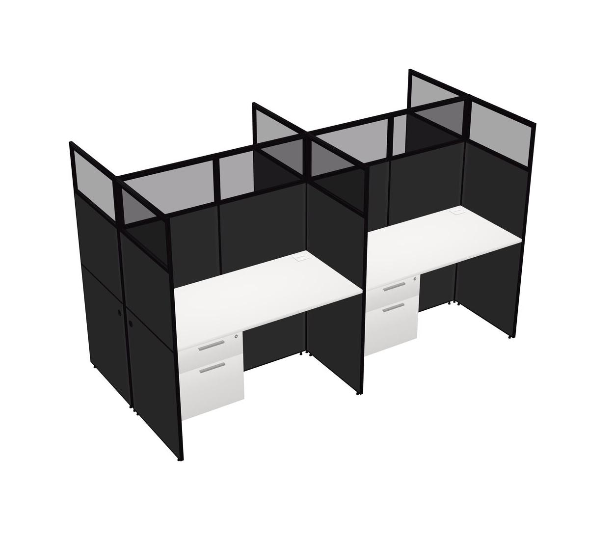 White Shared Rectangular Office Cubicle Panel System With Hanging Drawers For 4 Persons