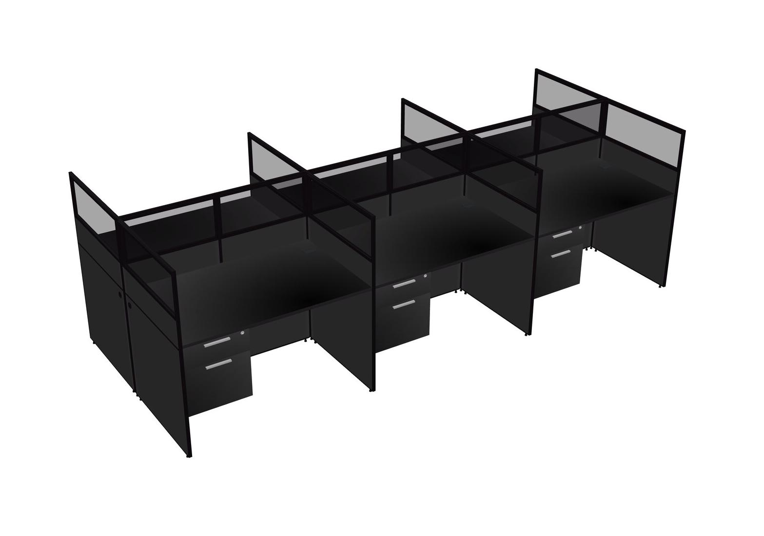 Black Shared Rectangular Office Cubicle Panel System With Hanging Drawers For 6 Persons