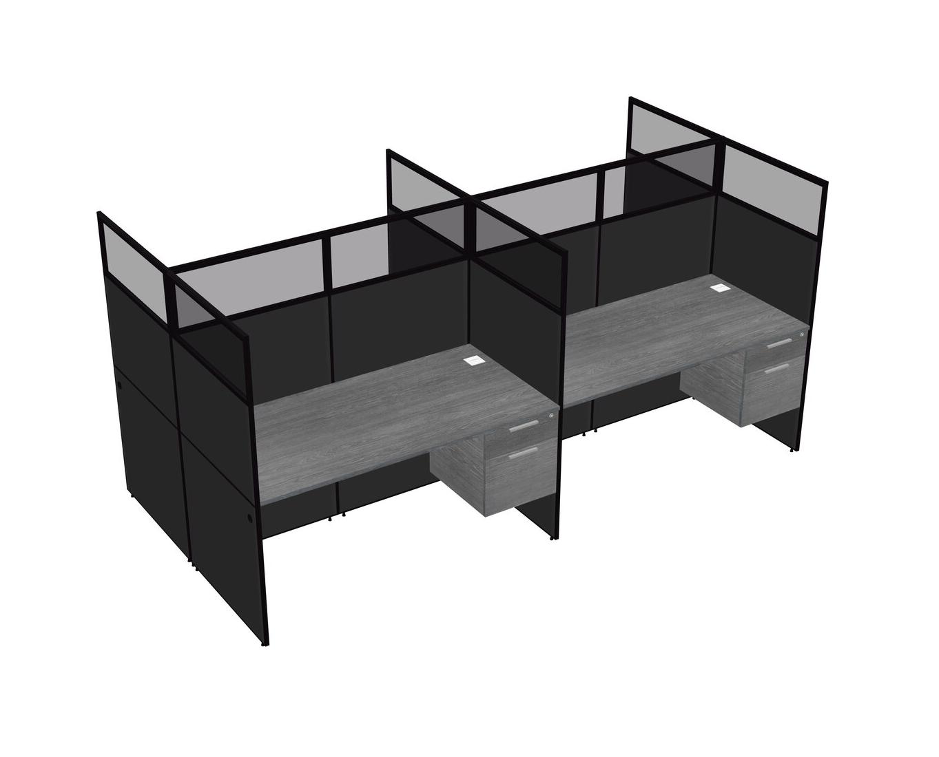 Grey Shared Rectangular Office Cubicle Panel System With Hanging Drawers For 4 Persons
