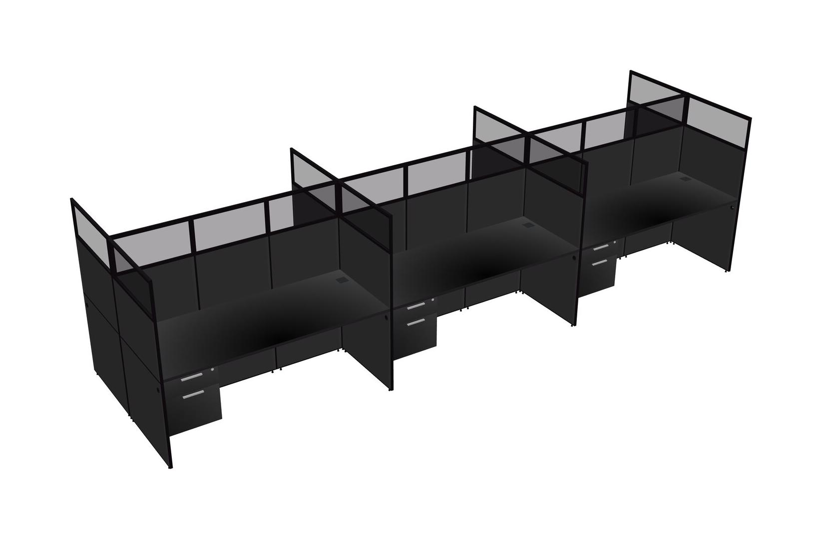 Black Shared Rectangular Office Cubicle Panel System With Hanging Drawers For 6 Persons