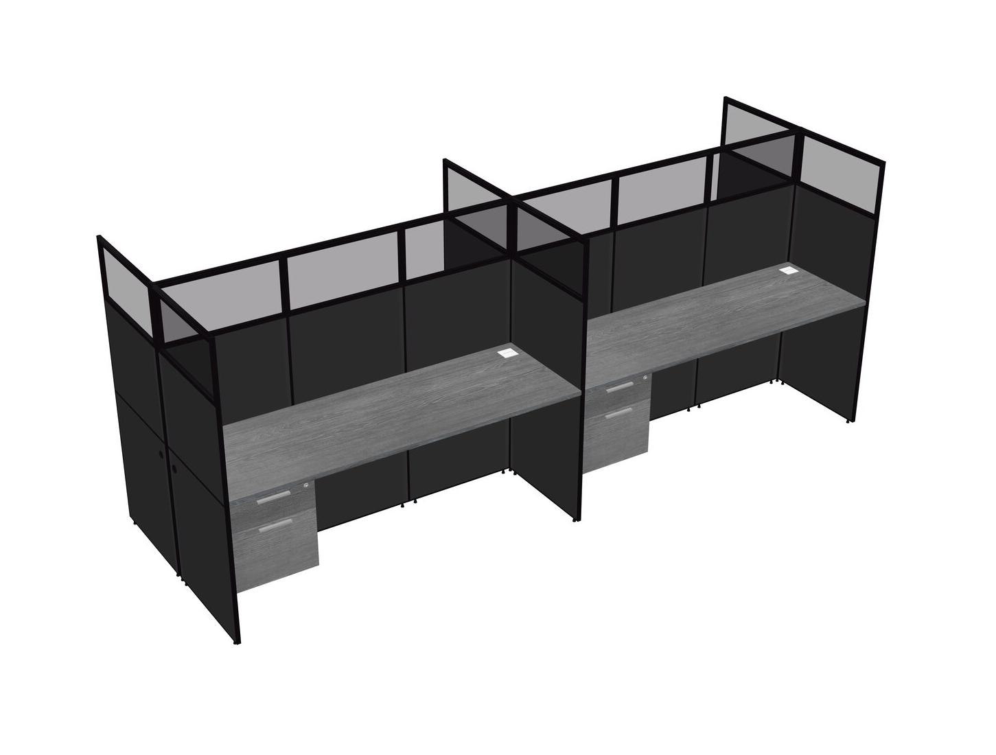 Grey Shared Rectangular Office Cubicle Panel System With Hanging Drawers For 4 Persons