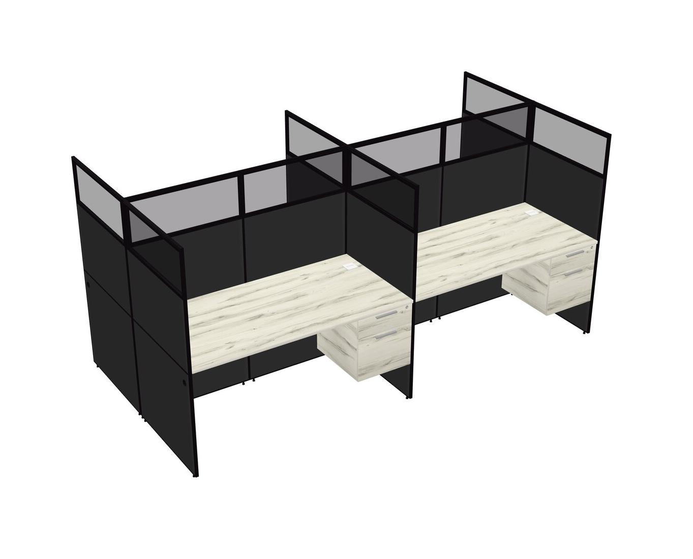 Heinne Holz Shared Rectangular Office Cubicle Panel System With Hanging Drawers For 4 Persons