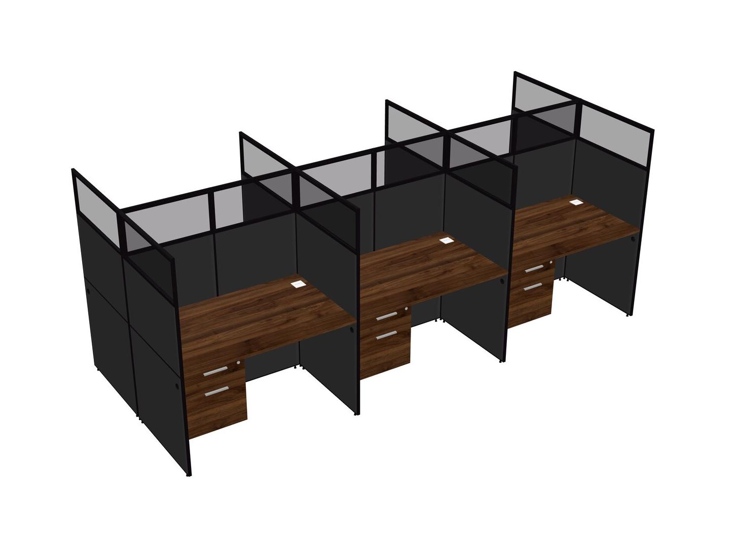 Columbia Walnut Shared Rectangular Office Cubicle Panel System With Hanging Drawers For 6 Persons