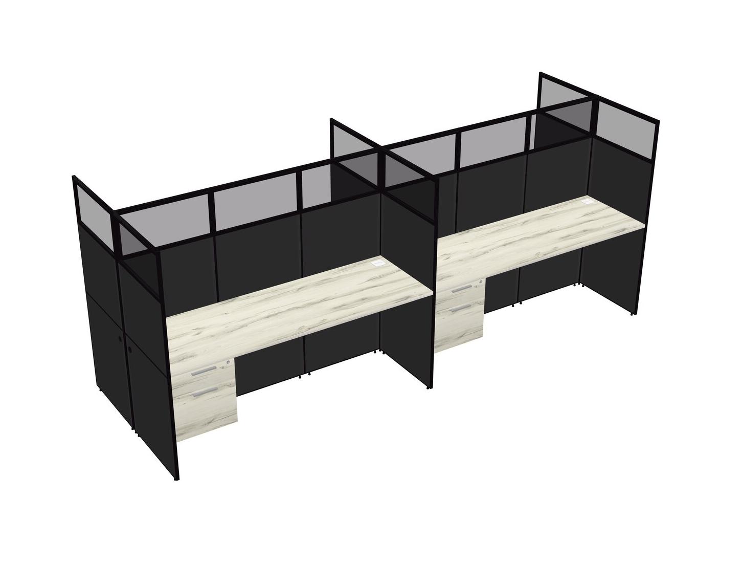 Heinne Holz Shared Rectangular Office Cubicle Panel System With Hanging Drawers For 4 Persons