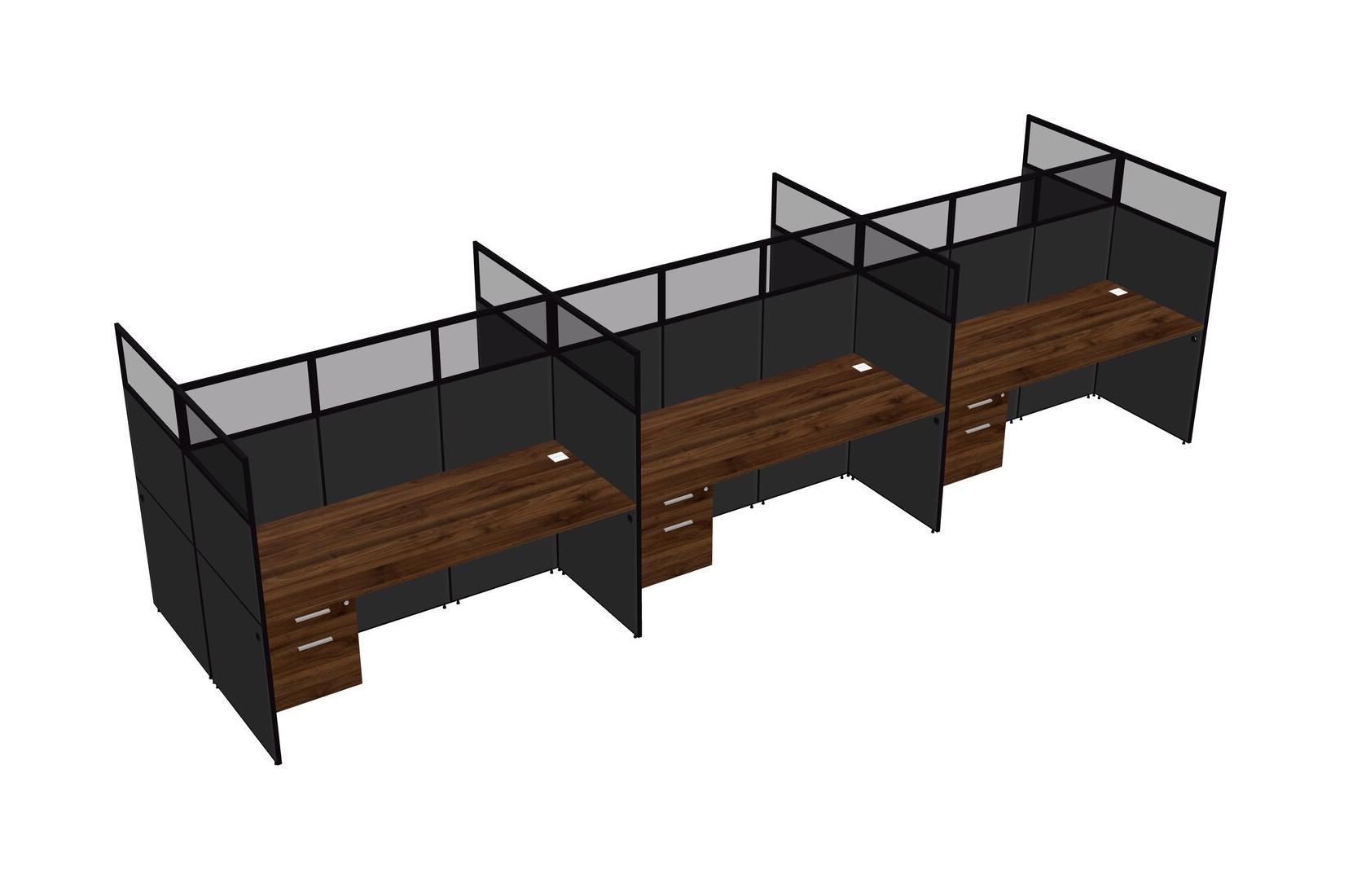 Columbia Walnut Shared Rectangular Office Cubicle Panel System With Hanging Drawers For 6 Persons