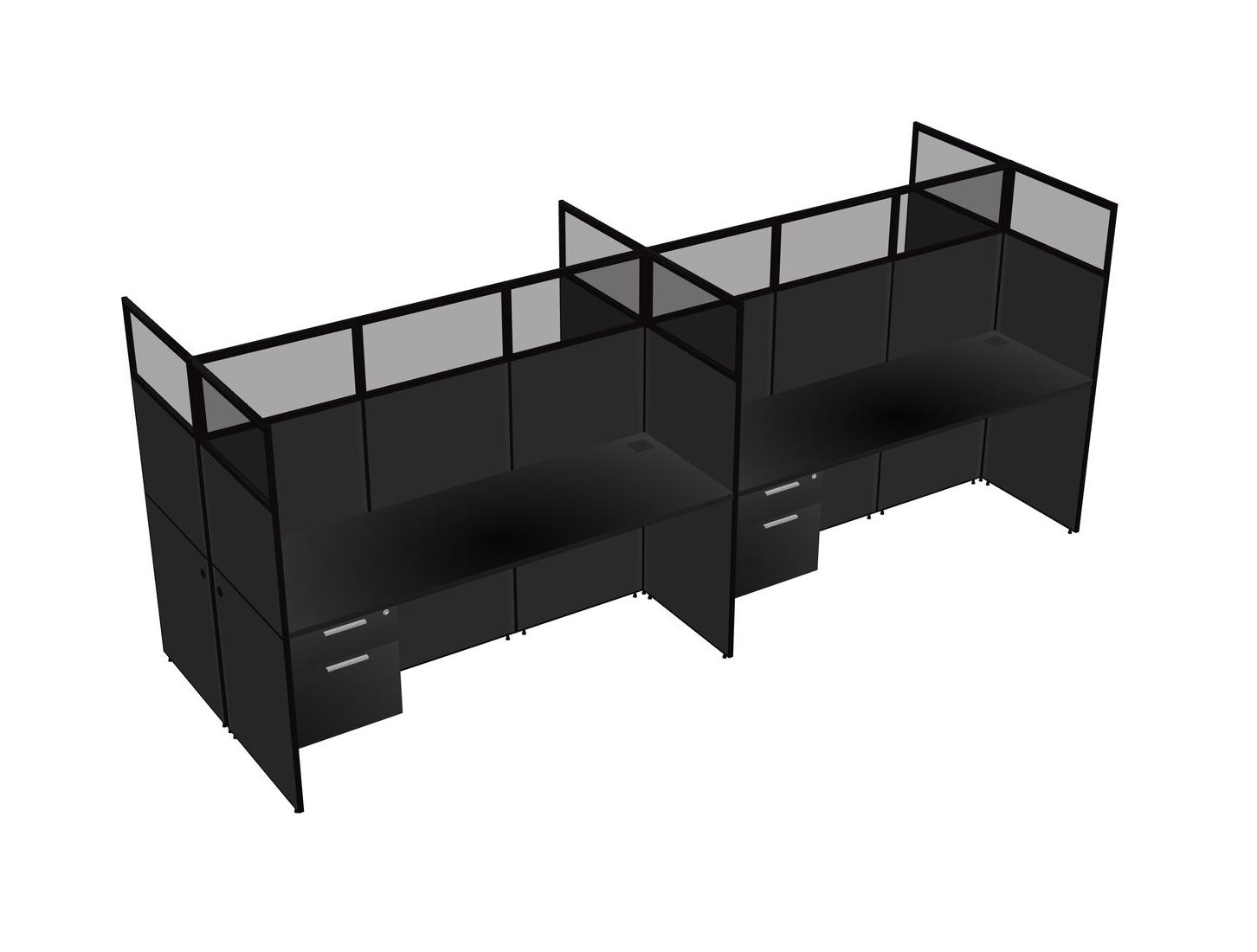 Black Shared Rectangular Office Cubicle Panel System With Hanging Drawers For 4 Persons