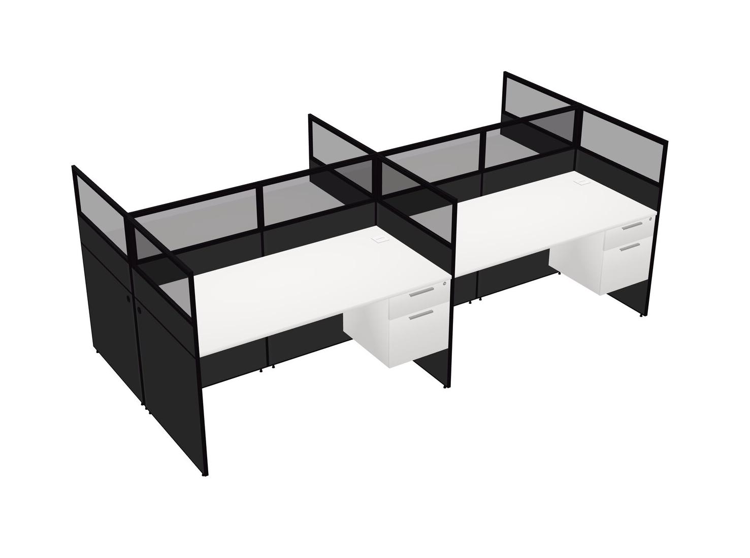 White Shared Rectangular Office Cubicle Panel System With Hanging Drawers For 4 Persons