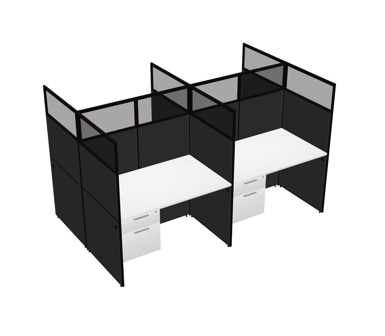 White Shared Rectangular Office Cubicle Panel System With Hanging Drawers For 4 Persons